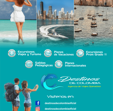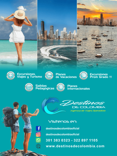 En Destinos de Colombia convertimos tus sueños de viaje en experiencias inolvidables 💙 🎒 Excursiones y viajes turísticos 🏖️ Planes de vacaciones 🎓 Excursiones Prom Grado 11 📚 Salidas pedagógicas 🌎 Planes internacionales Viaja con seguridad, respaldo y la mejor experiencia, ya sea en familia, con amigos o con tu institución educativa 🚌✨